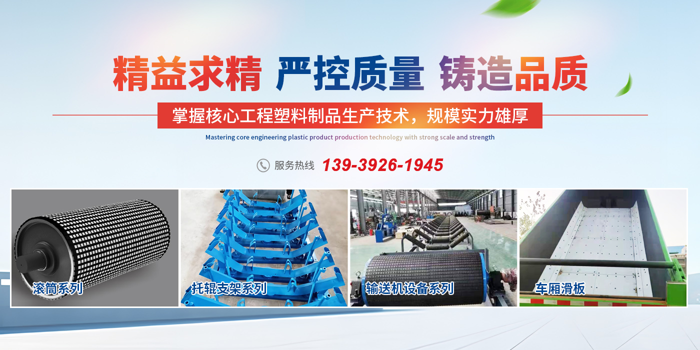 主營生產(chǎn)輸送機(jī)、襯板、托輥、支架、耐磨陶瓷、滾筒及其它系列工程塑料產(chǎn)品